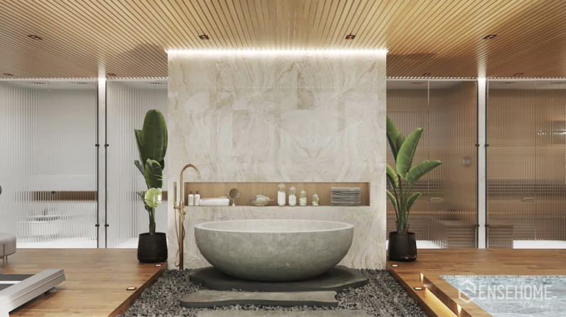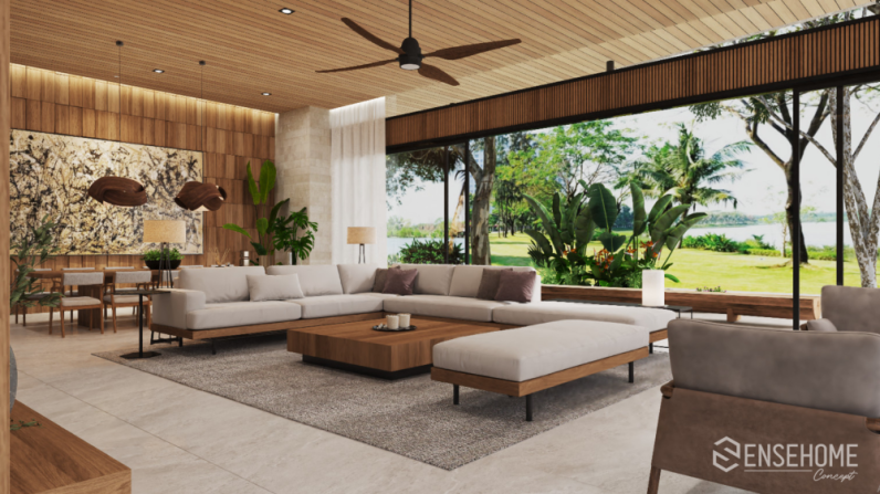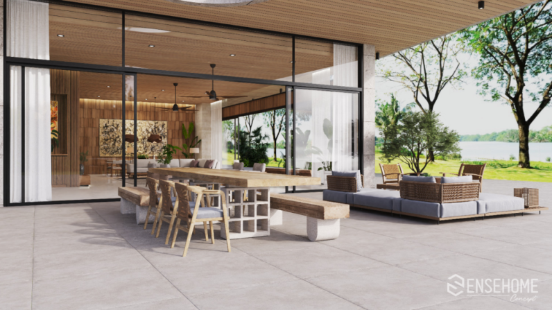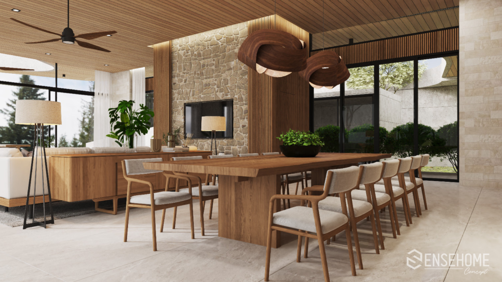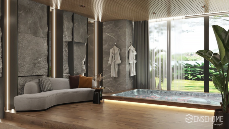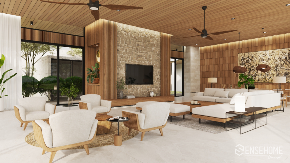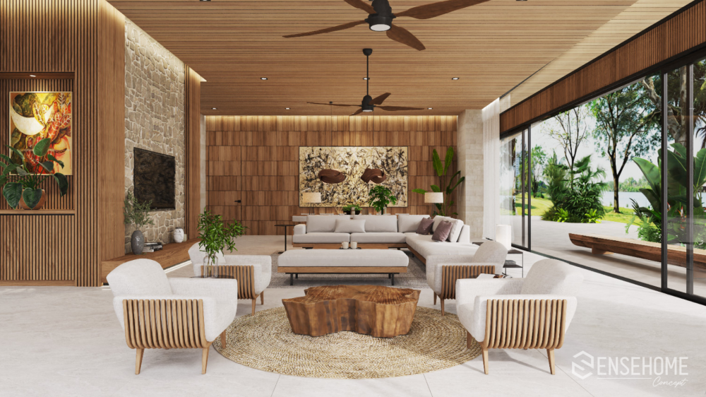 “ Có những tâm hồn cần sự riêng tư nhưng trái tim luôn khao khát tình yêu thương và sự giao cảm” - Cảm xúc ấy SENSEHOME CONCEPT được lắng nghe từ những chia sẻ của gia chủ trong một dự án đặc biệt. Một không gian hòa mình với thiên nhiên mang lại sự thoải mái cho một đại gia đình nhưng mỗi một thành viên khi cần nghỉ ngơi cũng sẽ có khoảng không riêng để chăm chút cho sức khỏe tinh thần. SENSEHOME CONCEPT gọi đó là “ nơi chốn” - không gian của đoàn tụ, nhưng cũng chính là “ nơi trốn” - trốn khỏi những ồn ào của đô thị và những bộn bề của công việc. Chính vì vậy thiết kế ra đời dựa trên sự mộc mạc của chất liệu gỗ làm nền và các vật liệu đá, gạch đơn giản nhưng tinh tế, tạo nên được tinh thần nghỉ dưỡng của Villa thanh lịch và đẳng cấp.
