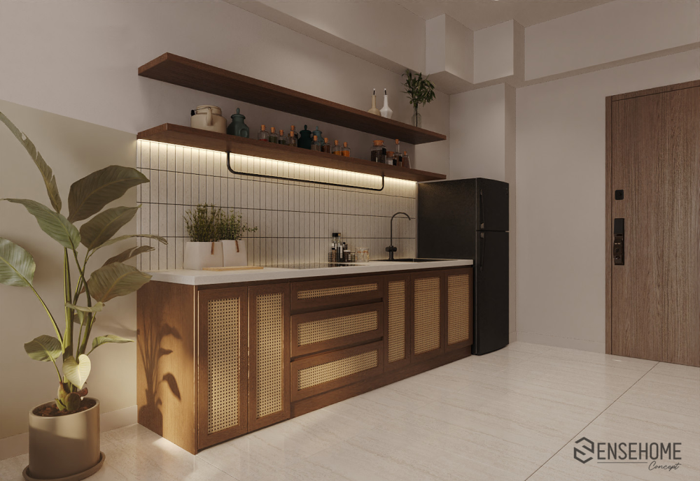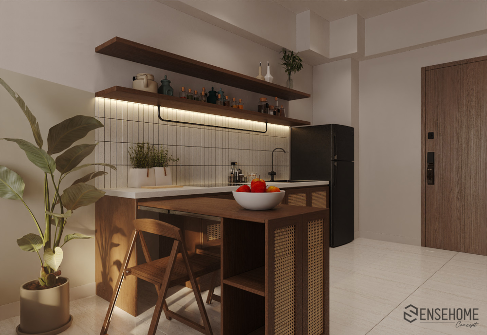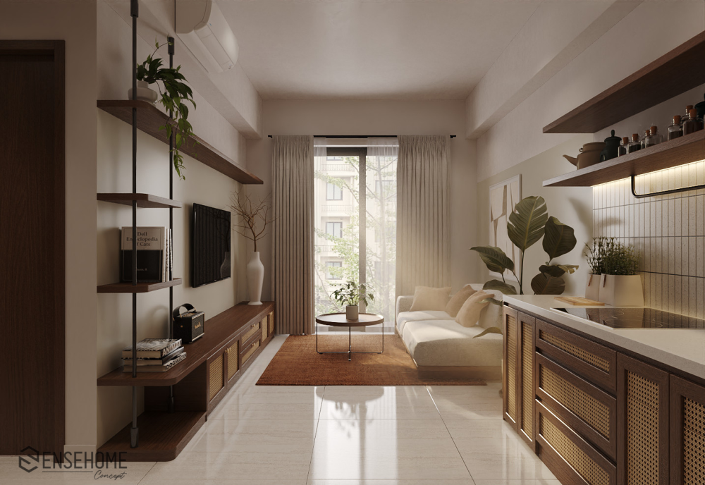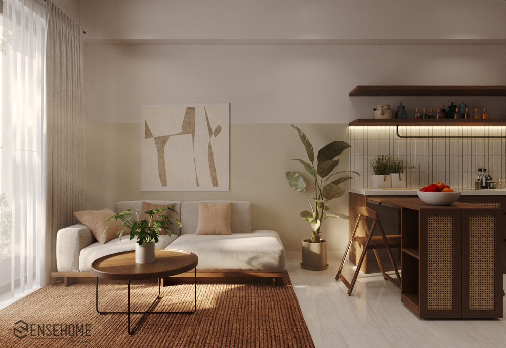 Dùng trái tim để cảm nhận vẻ đẹp của một ngôi nhà là điều tuyệt vời mà bất kỳ thành viên nào trong gia đình đều có thể làm được Bên cạnh các dự án mang phong cách vẻ đẹp của những điều không hoàn hảo Wabisabi chính là Yūgen - lý tưởng cổ xưa trong thẩm mỹ Nhật Bản. Yūgen hay Wabisabi đều trở thành nền tảng cho các phần lớn chuẩn mực văn hóa và thẩm mỹ. Vẻ đẹp của căn hộ được tạo hình mềm mại bởi các vật liệu, màu sắc nhẹ nhàng, thủ công.
