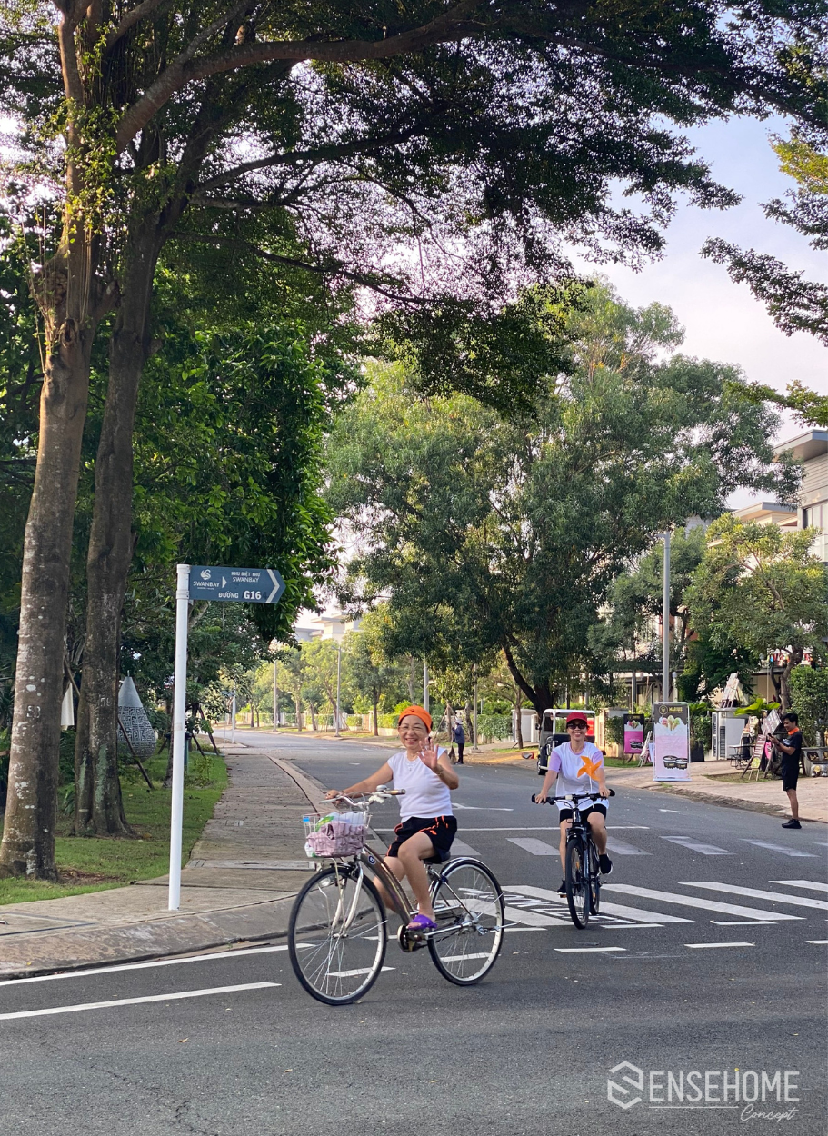A green living space that embodies the convergence of nature, closely connected with the riverine climate, surrounded by trees, and unpolluted because most people walk, ride bicycles, and use electric vehicles for transportation