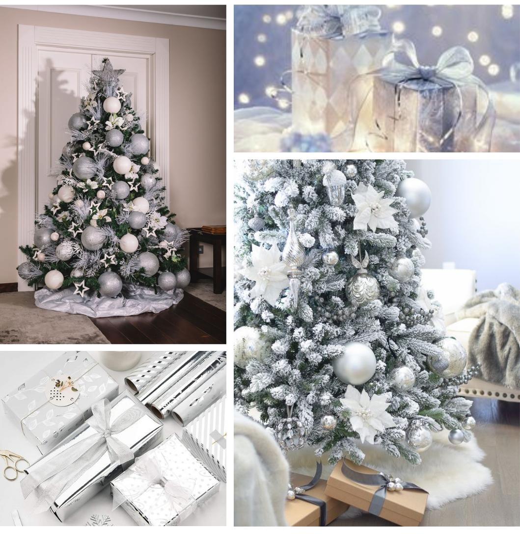 The platinum color brings a sense of opulence, particularly fitting in Christmas decorations with elements like gifts, bells, gingerbread cookies, and Christmas wreaths. The shimmer of platinum shines through in decorative lights, and opting for platinum details such as silk, tinsel, and gold-covered accents on the Christmas tree highlights the decor space.