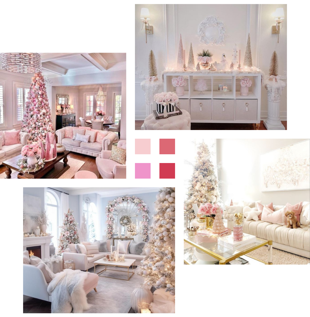 Pink Tone: The color pink in Christmas decor brings a gentle, sweet, and slightly feminine touch to the holiday space. Although not the dominant color like red or green, pink is often used as an accent to make the space feel cozier and more charming.