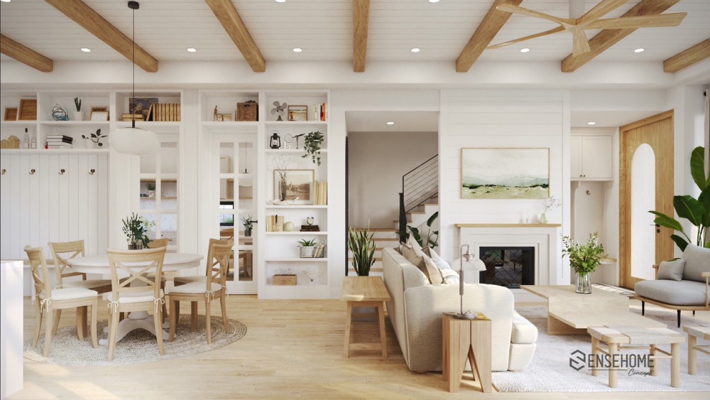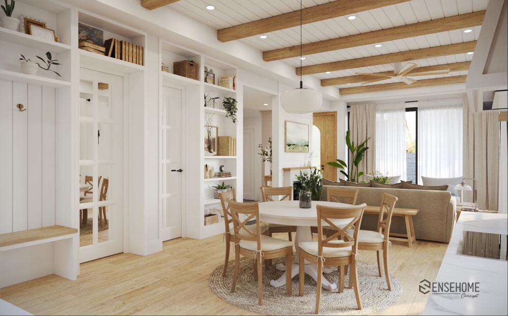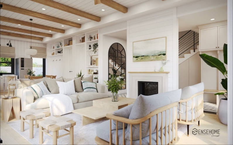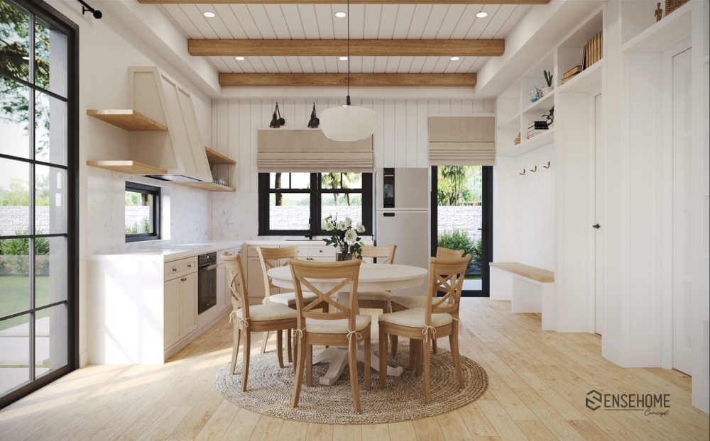 With SENSEHOME CONCEPT, experience a touch of nostalgia for the familiar values, imbued with the essence of the countryside, right in the heart of the urban environment, in a house designed in the Farmhouse style. This style focuses on coziness, simplicity, and a connection to nature, providing a sense of intimacy and friendliness. The house uses materials such as wood, stone, metal, and carpets to create a sense of intimacy and warmth.