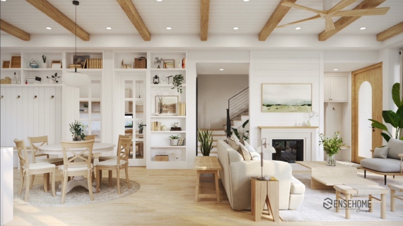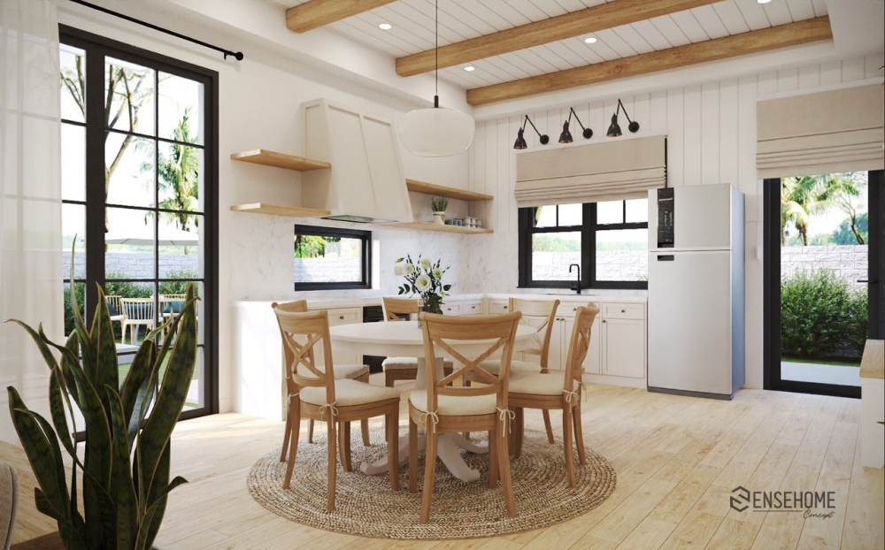 Farmhouse-style design often incorporates rural landscapes, immersing us in the emotions of a painting of fields, grass, and various flowers. It can be said that natural beauty is the most enduring beauty of all time, and the combination of timeless furniture adds lasting value to the space. It's a place where we cherish memories and happiness.