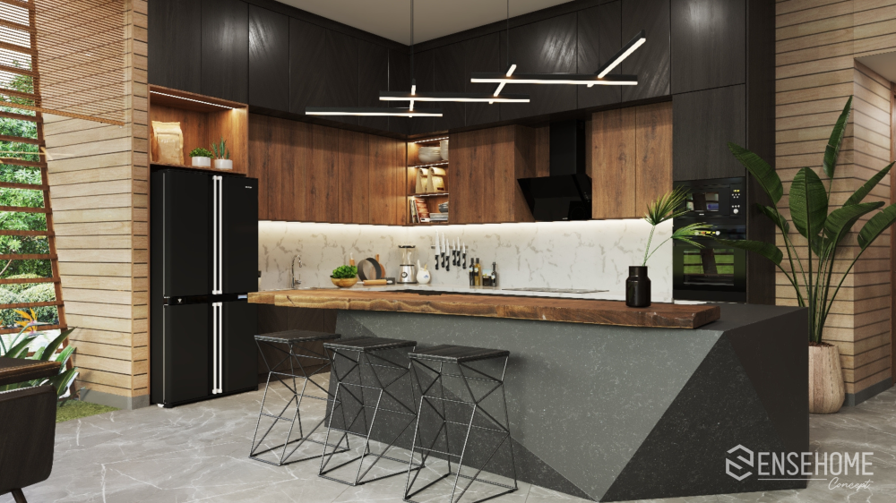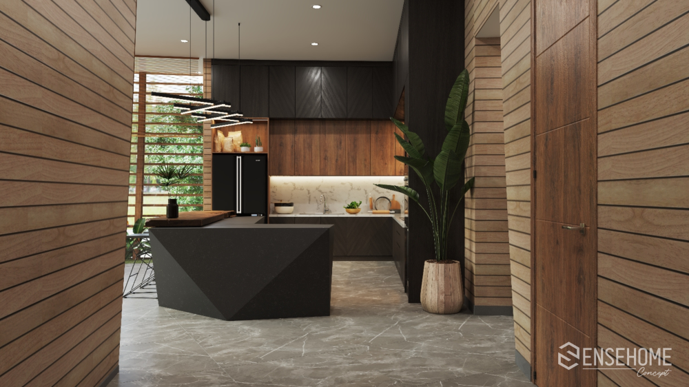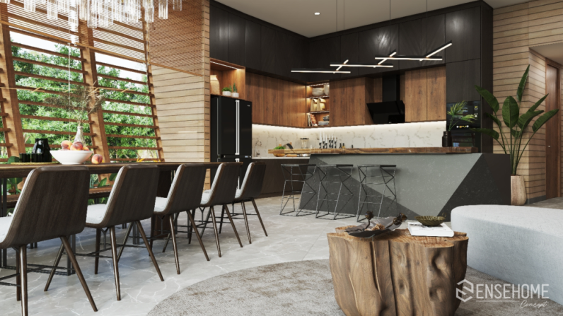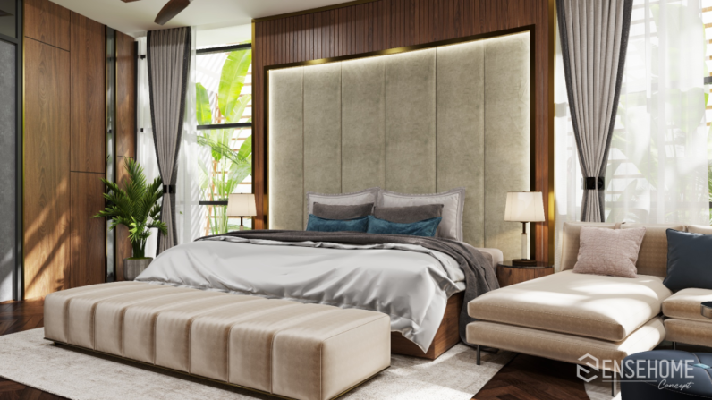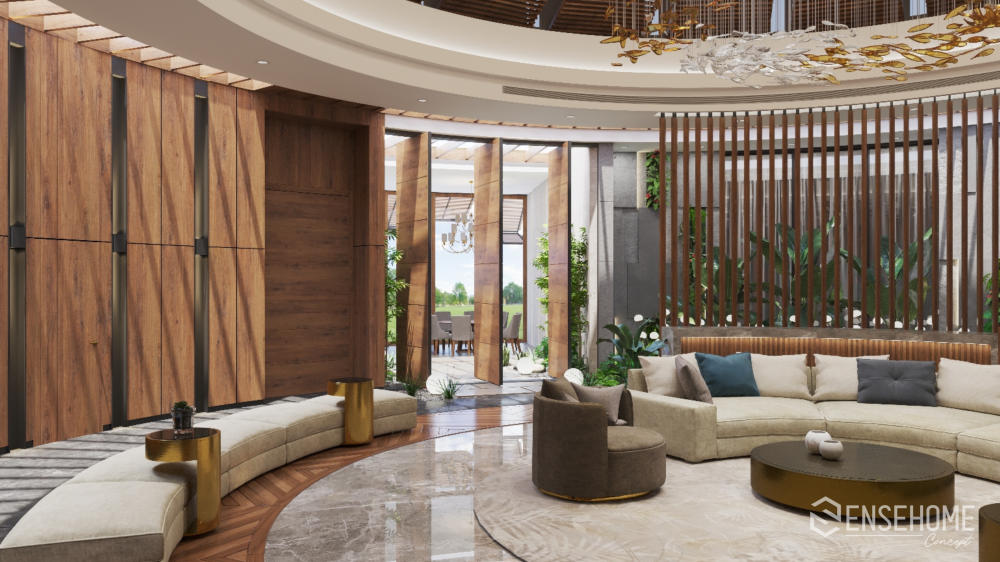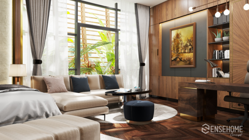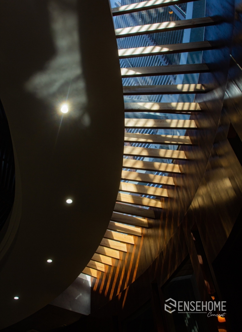 SENSEHOME CONCEPT chose the "Tropical Contemporary" style, incorporating natural materials to embellish contemporary lines, resulting in spaces of superior aesthetics that retain tranquility and serenity within the immediate gaze. The living room, situated at the center, acts as the heart of the home—a space for conversation, bonding, nourished by natural light from various hallways. All shared and private spaces create a balance between comfort and privacy for each member. SENSEHOME CONCEPT aspires for all to collectively nurture and warm their own abode.