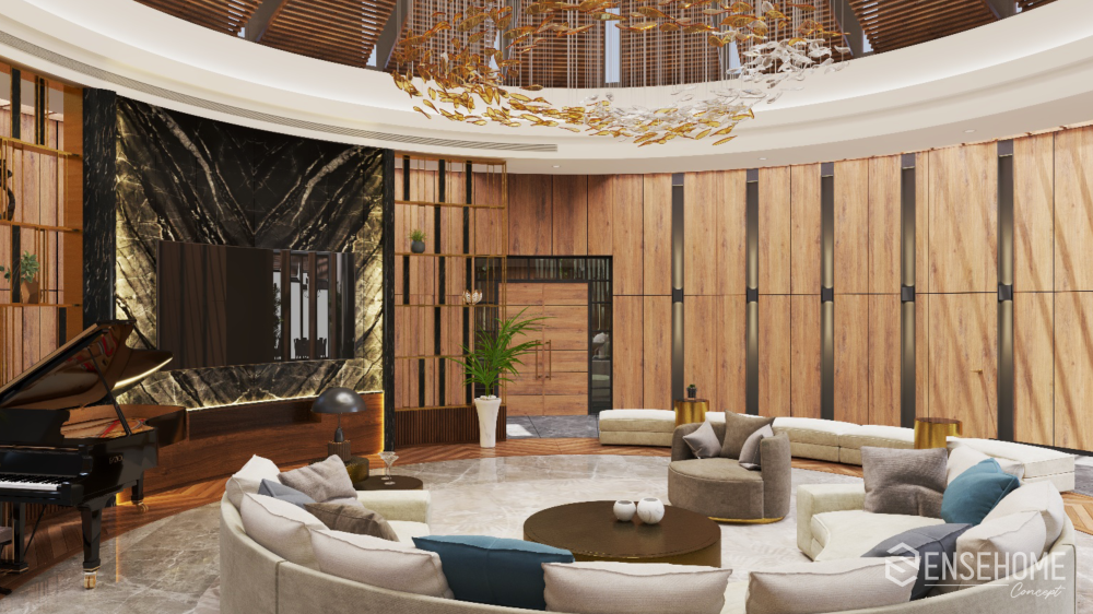 The lotus flower exudes a discreet elegance, symbolizing privacy for the homeowner. It's both intimate and noble, representing simplicity and sophistication, resulting in a unified and refined masterpiece. The exterior design resembles a blooming lotus bud, while the circular shape within symbolizes unity, integrity, and fulfillment, creating a complete, prosperous, and joyful atmosphere.
