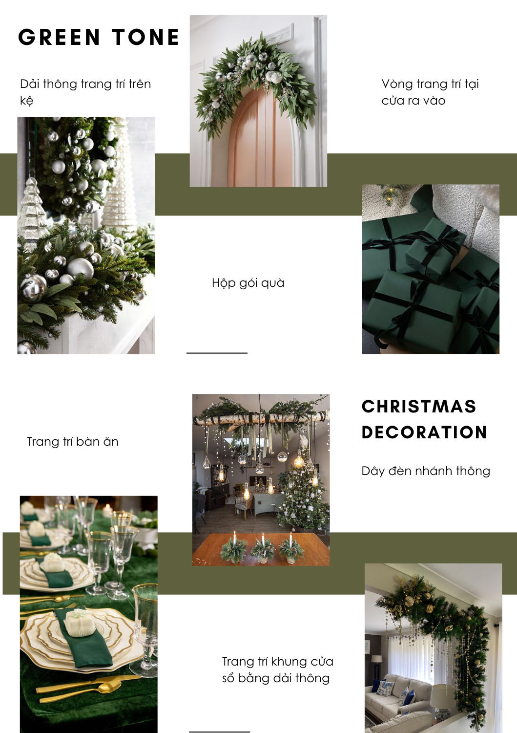 Tone xanh: Màu xanh đại diện cho sự sống và sức khỏe, là biểu tượng của cây thông Noel và thiên nhiên mùa đông