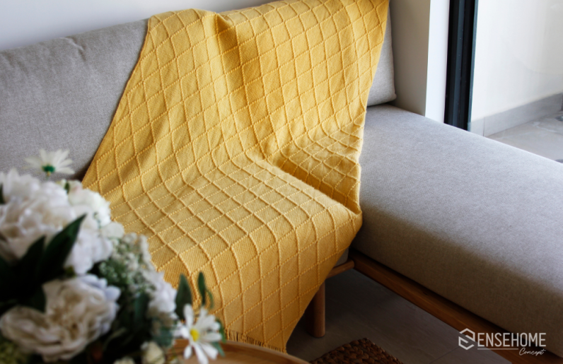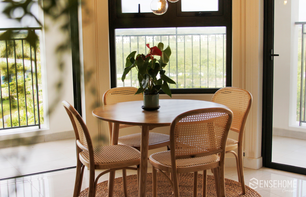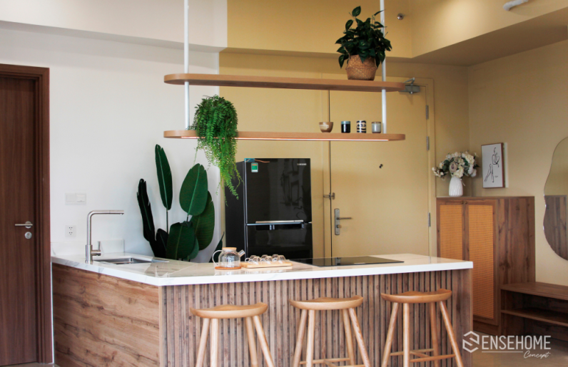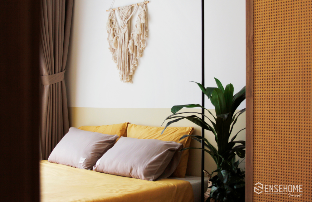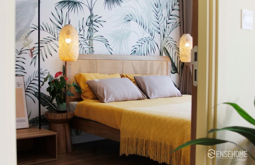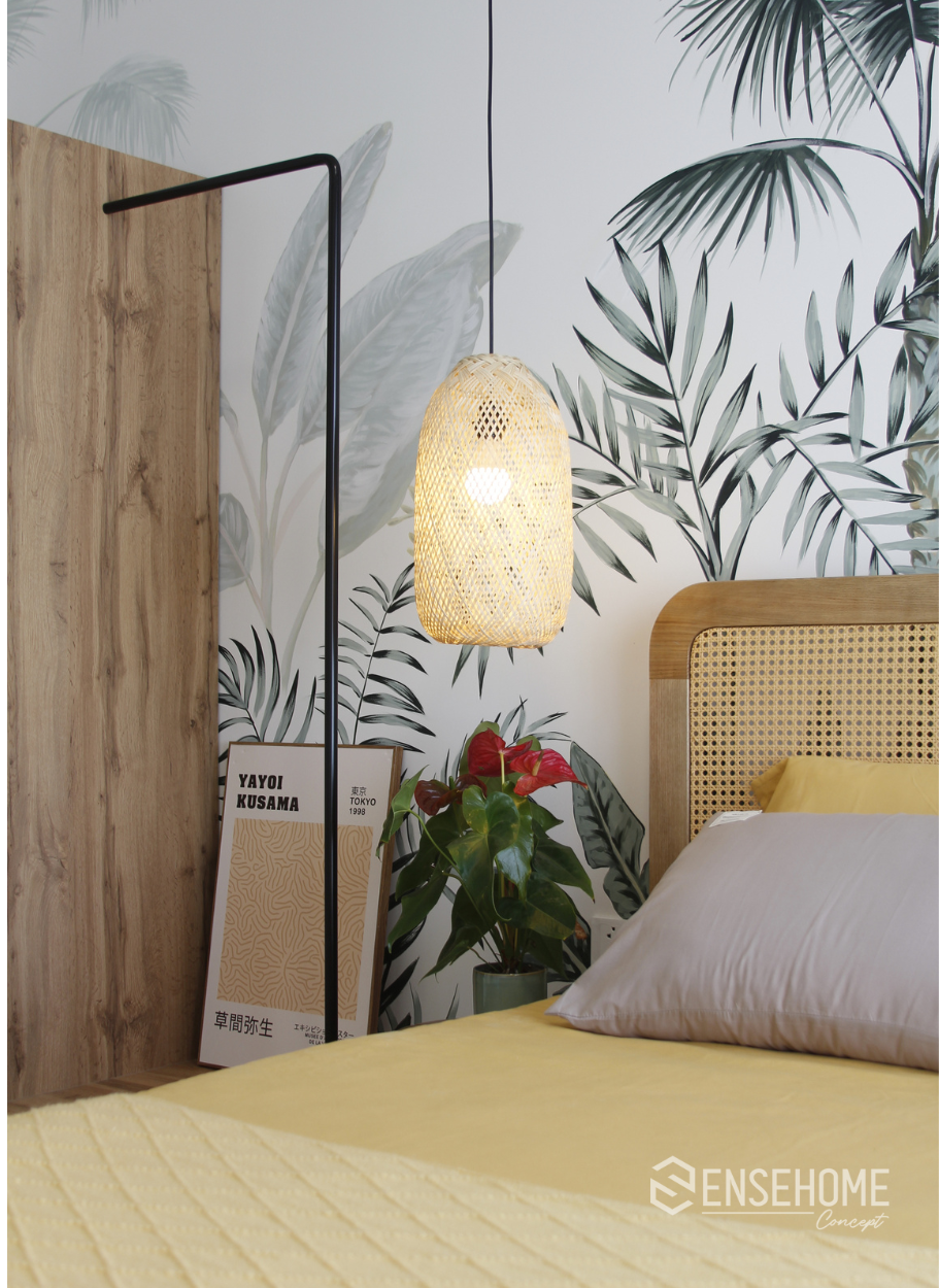 Họa tiết trang trí cọ, lá dừa lấy cảm hứng từ một khu vườn nhiệt đới cùng với màu sắc tươi sáng, nhẹ nhàng kết hợp với các đường nét đậm màu và sắc nét của nội thất trang trí, Nắng mùa hè không mang lại cảm giác nóng nực, ngột ngạt mà như một làn gió nhẹ thổi qua trong ánh nắng trong vắt của buổi sớm mai đầy thanh tẩy và chữa lành.