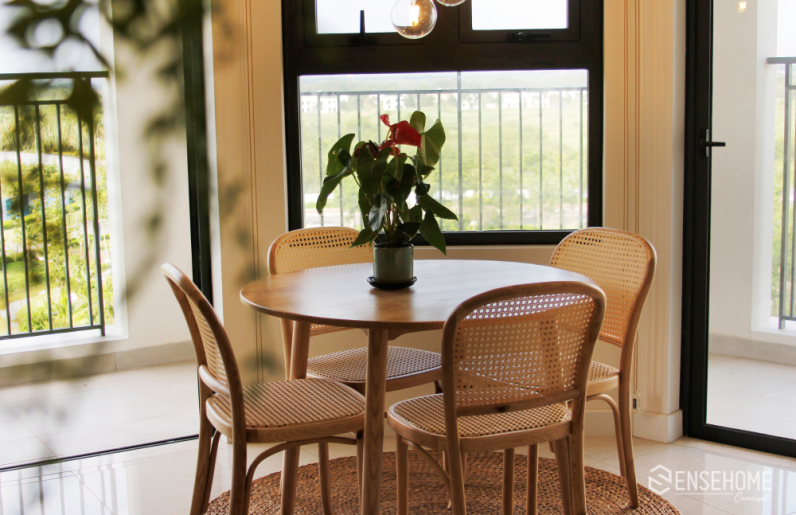 Trên một hòn đảo nghỉ dưỡng với không khí trong lành và sự yên tĩnh hiếm có thì không gì phù hợp hơn với một ngôi nhà mang phong cách thiết kế Tropical hòa mình với thiên nhiên. Chất liệu có nguồn gốc tự nhiên như gỗ, mây tre vừa tạo cảm giác an toàn nhưng lại nhẹ nhàng, bay bổng. Sofa, ghế tựa và bàn trà là sự kết hợp hoàn hảo cho một buổi chiều đọc sách, uống trà, hàn huyên tâm sự hay đơn giản là thả mình trôi theo những đám mây qua ô cửa kính lớn được thiết kế bao quanh hai mặt tiền của căn nhà.